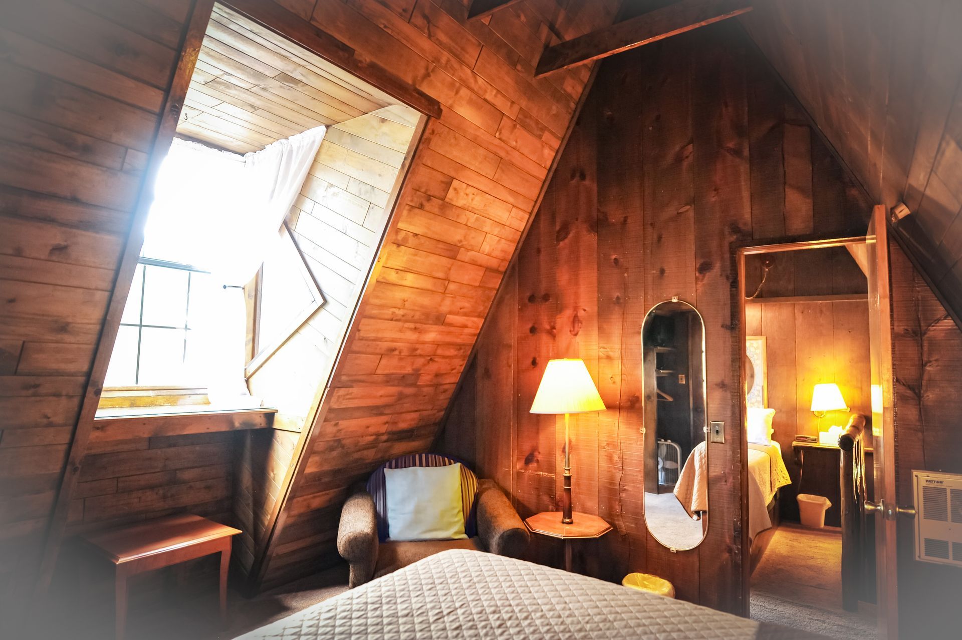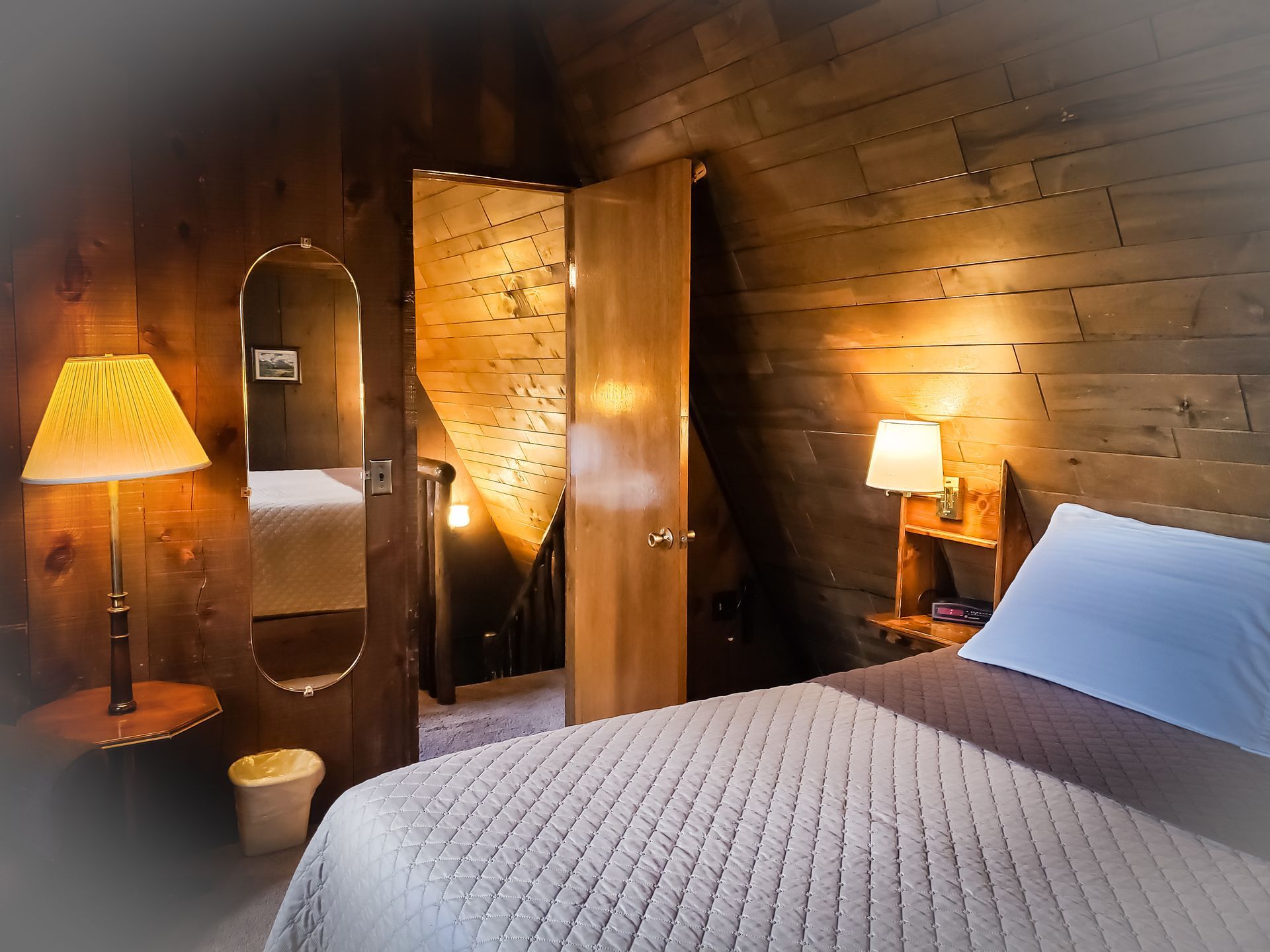 - Two bedrooms upstairs. One private bedroom with a Queen sized. One loft-type bedroom with a double sized bed
