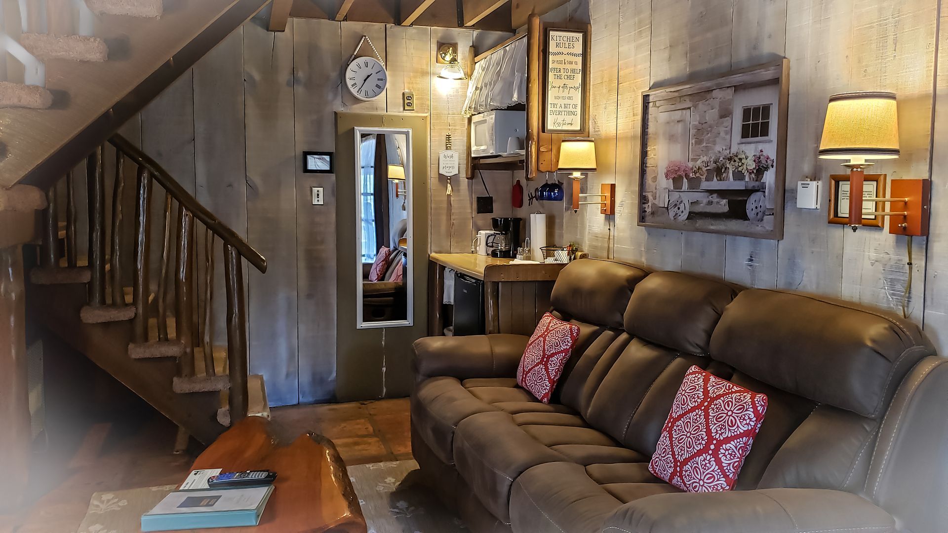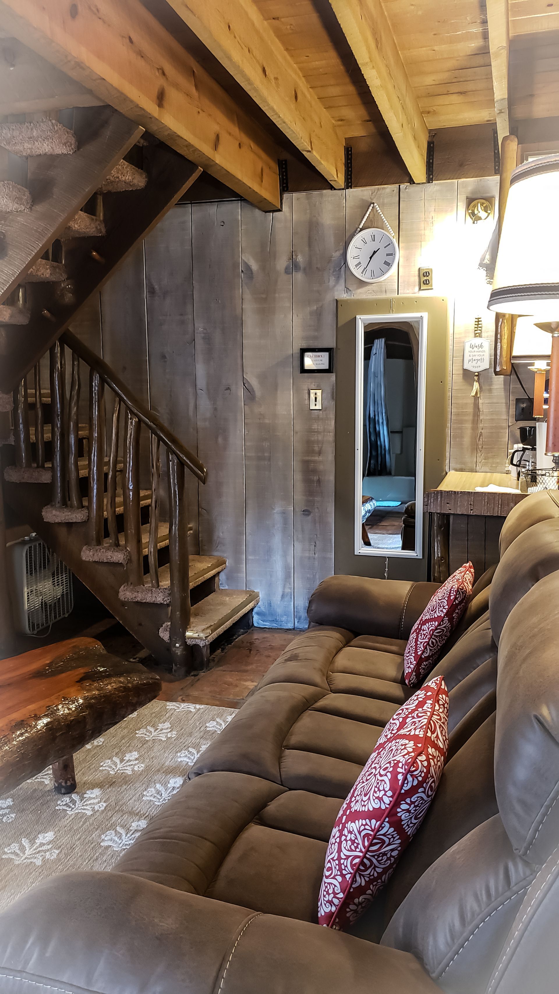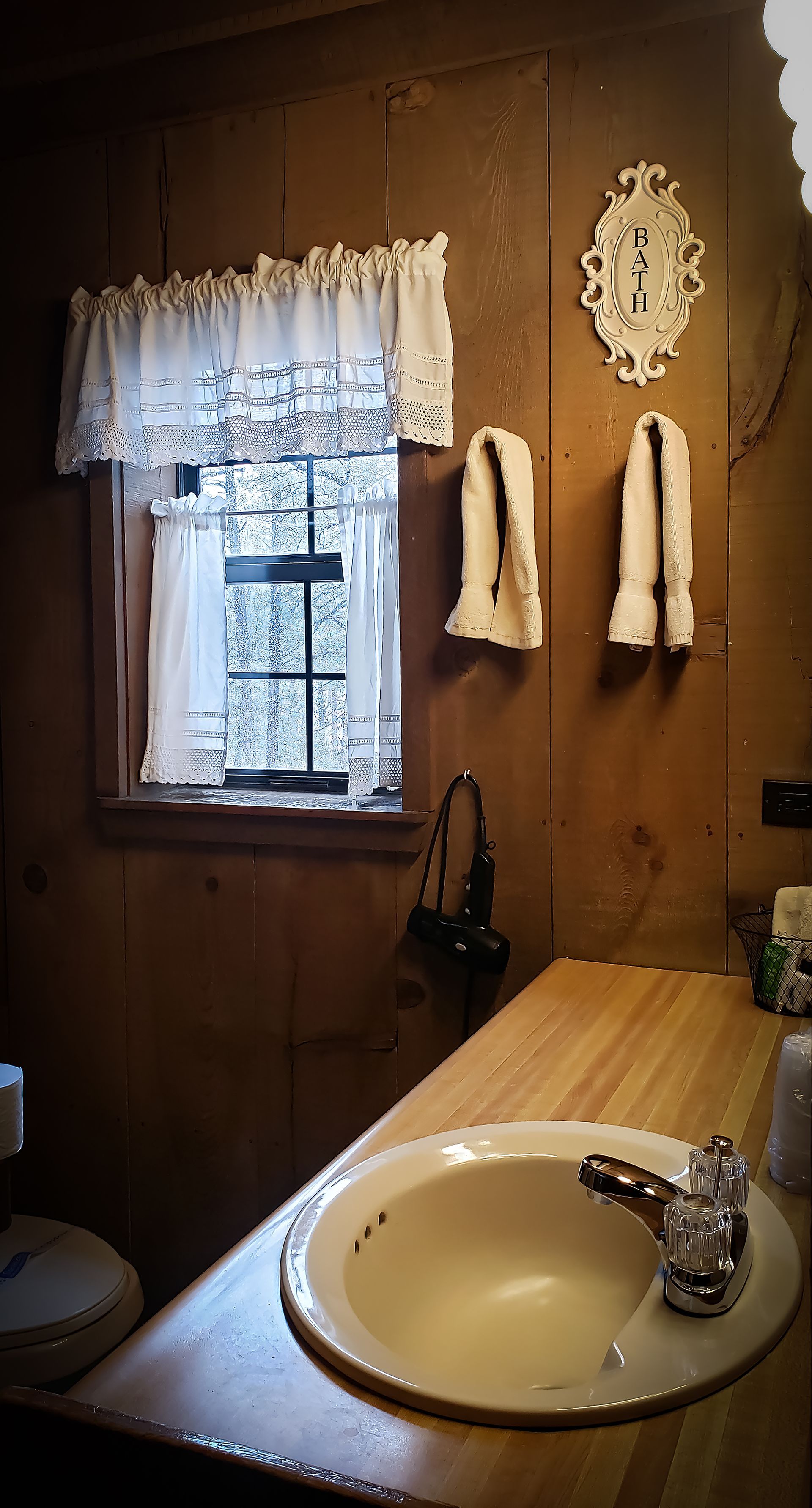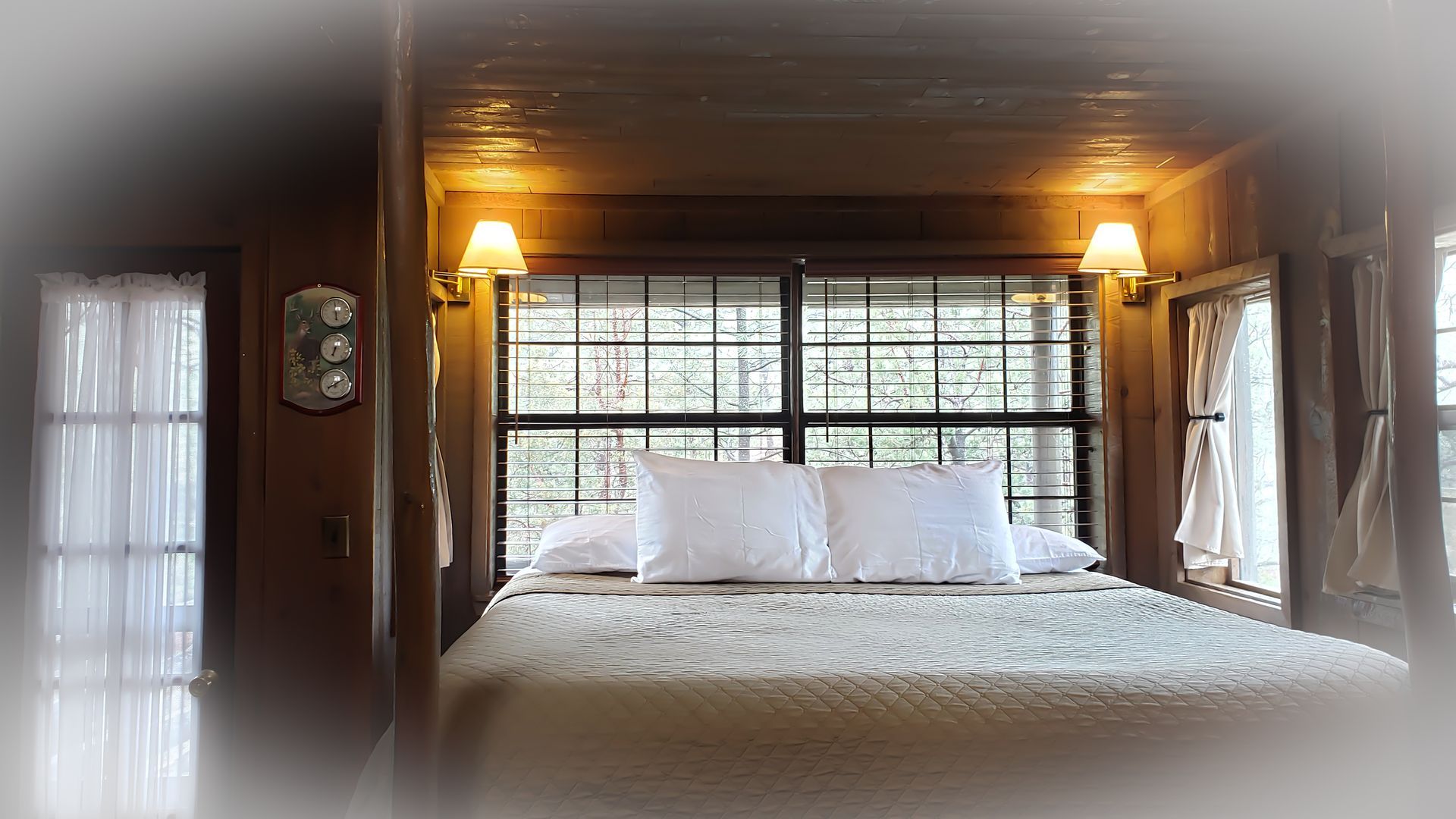 Experience the serenity of nature, bird watch while you relax in the cool breezes of the ponderosa pines. Cabin A is a split level cabin with an elevated king size bed upstairs. It has a skylight and windows galore. Cabin A has a refrigerator, microwave, coffee counter and a southwest-style fireplace. The front porch is loaded with a picnic table, bird feeder, Adirondack chairs & a BBQ grill is available.